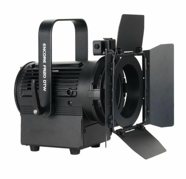 Az Encore színpadi világítási sorozat része, az Encore FR20 DTW lámpatest 2 hüvelykes Fresnel lencsével van felszerelve, és 17 W-os, meleg fehér LED-motorral működik. Puha élű gerendát állít elő színpadi, színházi és kereskedelmi használatra 3000K-on. Tartalmazza a terelőlemezeket a fényszóródás beállításához, valamint egy kézi gombbal a fényerő-szabályozást 100%-ról 0%-ra állítja, a fényerő-melegítés funkcióval. Triac fényerőszabályzóval is szabályozható - kompatibilis az ADJ fényerő-szabályozó csomagokkal vagy a szabványos fali fényerő-szabályozókkal.