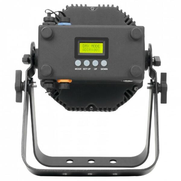 Vezeték nélkül vezérelhető, akkumulátoros RGBA LED PAR - Fény Forrás: 5x 5-Watt QUAD LED (Piros, Zöld, Kék és Borostyán + UV) - IP65, kültéren is használható - Beépített WiFLY DMX vezérlés: kompatibilis az ADJ WiFLY adó- vevővel (külön megvásárolható) - 5 csatornás DMX mód: 4, 5, 6, 10 vagy 11 csatorna - Sugárzási szög: 25 fok - 6 üzemmód : Statikus szín, RGBAW & UV Dimmer Mód, Szín változtatás, Szín átusztatás, Program üzemmód és DMX üzemmód - 16 színváltó mód, 16 szín átúsztató mód, 64 beépített szín makró - LED pulse és Stroboszkóp effekt - Dimmerelhetőség: 0 - 100% - Vibrálás mentes működés - 4 pólusú tápcsatlakozó, akár 11 eszköz is összefűzhető (AC 100-240V, 50/60Hz (IEC In/Out) - Áramfelvétel: 50W max (ha minden led maximumom világít) - Méret: 310 x 280 x 194mm - Súly: 5.48 kg