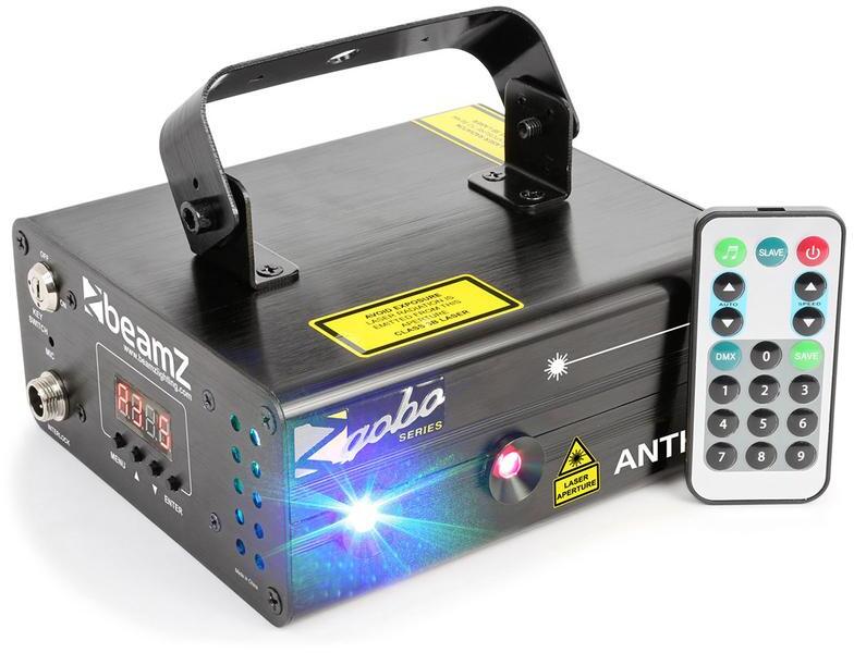A BeamZ Anthe II RGB a gyártó egyik 3 diódás (piros, zöld, kék) gobo lézere. Több előre programozott effektekkel amelyeket változtatgat és mozgat. Használhatjuk hangvezérlős módban ahol az érzékenység egy kis potméterrel állítható, létezik automata funkciója is amelyben az összes effektet váltogatja és mozgatja. Távirányítójával állíthatjuk a színeket, és a működésének módját. Nagyon egyedi, dizájnos mintákat megjelenítő nagy teljesítményű lézer. Tápkapcsolója kulcsos, így csak a hozzá való kulccsal lehet ki-be kapcsolni, ezzel megakadályozva, hogy illetéktelenek kapcsolgathassák. Ventilátoros hűtéssel rendelkezik, így hosszabb távon is gond nélkül használható.  Súlya mindössze 1 kg, mérete is kompakt, ezáltal szállítása és felszerelése nem jelenthet problémát. Teljesítményével házibulikba, kisebb discokba, aulákba is ideális választás.