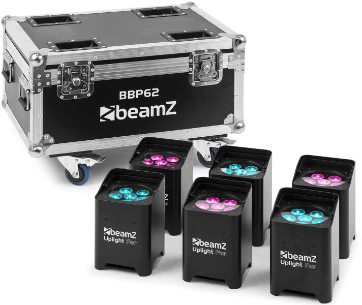 led, par lámpa szett, akkumulátoros, 6db lámpa + flightcase, DMX, IRC, 6db 12W-os hatszínű RGBWA+UV LED