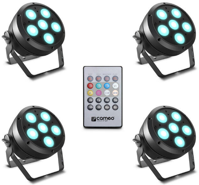 Cameo Root Par 6 set 1 – 4 darab CLROOTPAR6 lámpából álló készlet IR távvezérlővel, fekete 6 x 12 W-os ...