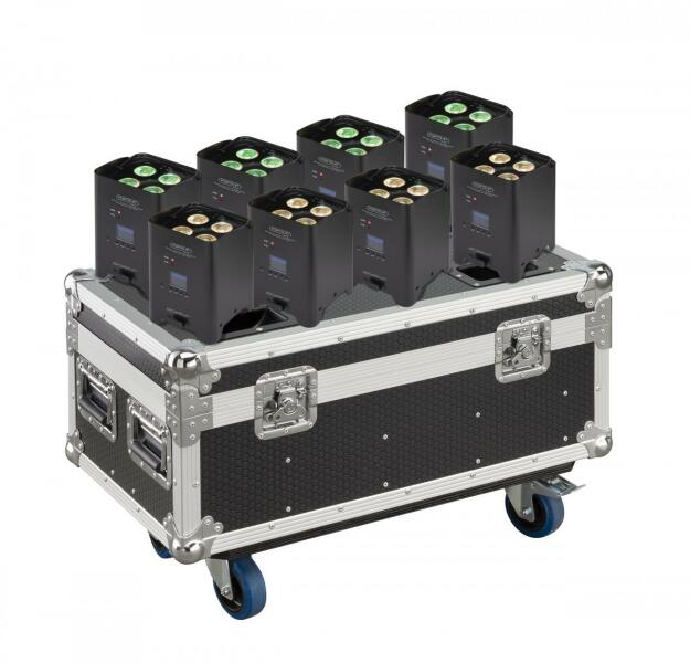 CENTOLIGHT PORTRAIT Q-AIR SET - Set of 8 LED PAR 4x12W RGBW 4in1 with lithium battery and flight case with charging function - J738J