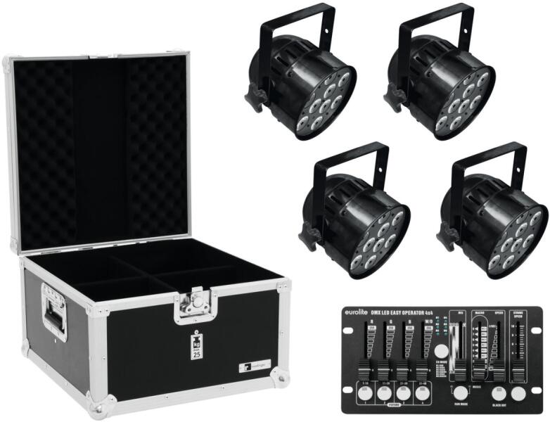 4x PAR-56 Spot with 9 x 8 W 4in1 LED including flightcase and compact DMX controller