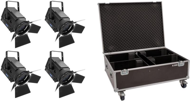 4x fresnel spot with 170 W warm white/amber LED including PRO flightcase