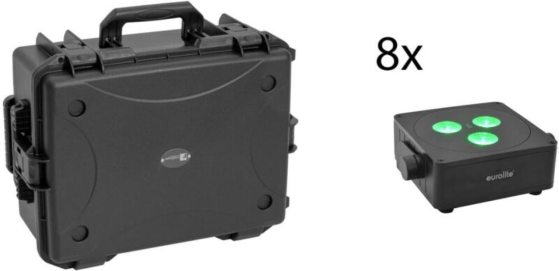 EUROLITE Set 8x AKKU IP Flat Light 3 bk + Plastic case with trolley (20001047)