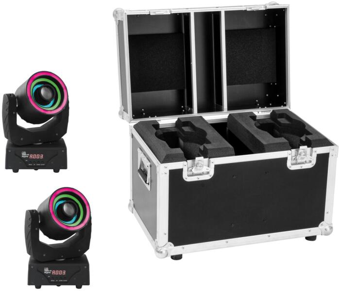 2x narrow angled spotlight with 3 hypno rings and 30 W LED incl. PRO flightcase