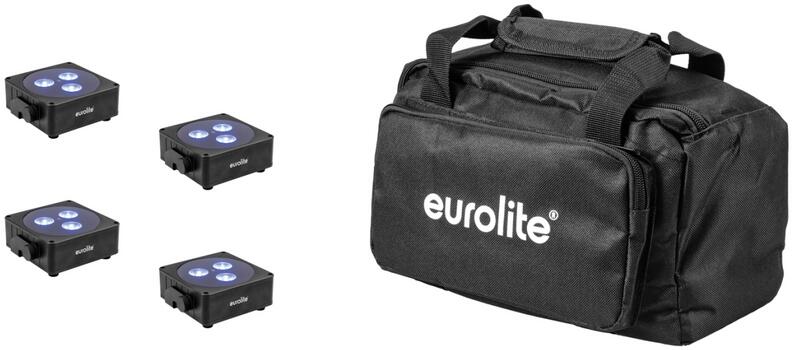 EUROLITE Set 4x AKKU Flat Light 3 bk + Soft-Bag - dj-sound-light