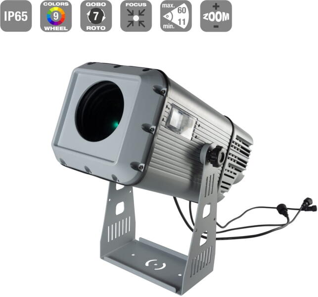 A GOBO Projector 300 IP AnimaEfect egy professzionális eszköz 11-60°-os sugárzási szöggel, IP65 vízálló, nagyon erős 300 W-os LED-del, 8 szín + fehér pajzs, cserélhető gobo slot (6 + animációs effektus), rázás, motoros fókusz és zoom. Tulajdonságainak köszönhetően a készülék tökéletes a kültéri munkához, nagyon erős fényáramot bocsát ki nagy távolságra a gobo mintájával. GOBO külső átmérő 25,2 mm, belső (üzemi): 20 mm. GOBO Projector 300 IP AnimaEfect - Jelszóval védett eszköz, amely megakadályozza a főmenühöz való jogosulatlan hozzáférést. Az alapértelmezett jelszó "Fel és Le, Fel és Le". Nyomja meg az "OK" gombot a jelszó elfogadásához. (Fel - le - fel - le - ok). A készlet nem tartalmazza a GOBO mintákat. Szállítási idő:Rendelésre
