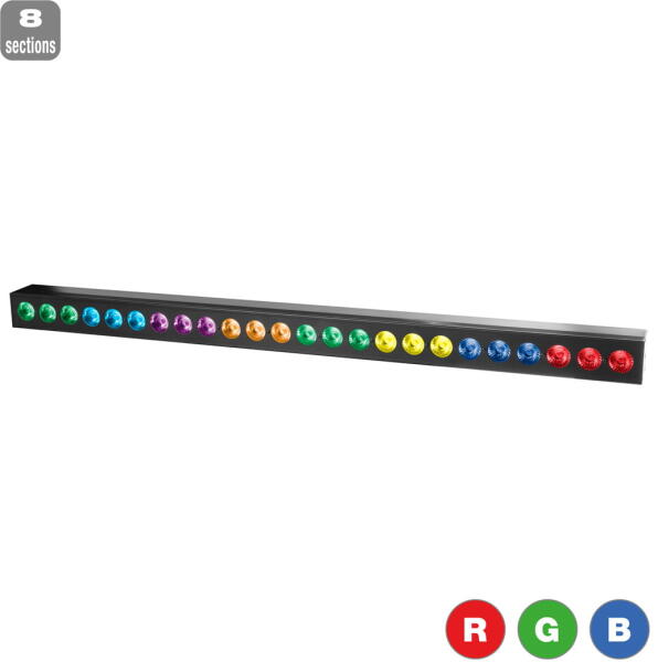 A LedBar 243 RGB egy nyolc szekciós LED sáv, amely 24 kiváló minőségű diódával van felszerelve, amelyek biztosítják az RGB színek egyenletes keverését. A készülék alumínium házzal, aktív hűtéssel, beépített XLR és PowerCON IN/OUT csatlakozókkal, valamint dupla fogantyúval rendelkezik, amely lehetővé teszi a készülék szerkezetre történő gyors felszerelését vagy felállítását. Ezen kívül ez a LED sáv számos vezérlési módot tesz lehetővé: DMX512, Hangvezérlés, Auto vezérlés, Master-slave, IR vezérlés, fix megvilágítási szöge pedig egyenletes irányú fényáramot biztosít. Szállítási idő:Rendelésre