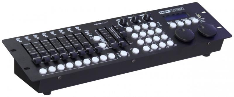 Fényvezérlő, DMX 512 - 24 lámpa 26 csatornán keresztüli vezérlése - 8 DMX csatorna fader - Programozható PAN/TILT tekerők - 36 programozható Scene - 36 programozható Chase, mindegyikhez 100 scene rendelhető - Manuális vagy auto mód, beépített mikrofon - USB port mentéshez és előhíváshoz - LCD kijelző (2x 16 karakter, háttérvilágítás) - Normál 19" méret - Méret: 527 x 192 x 87 mm - Tömeg: 2.5 kg