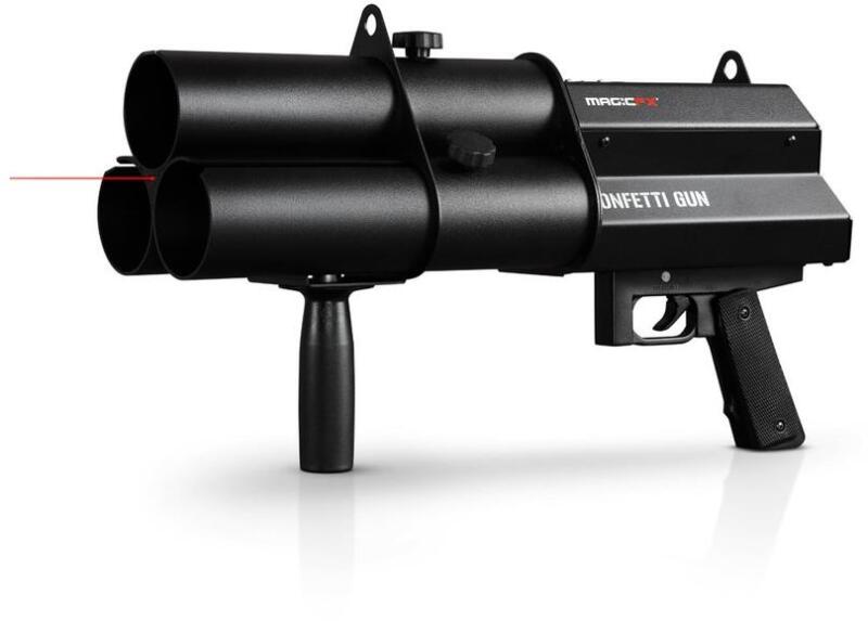 Az itt látható egyedi termékleírások és képek a DJSoundLight Kft tulajdonát képezik. Magic FX - Confetti Gun, elektromos akkumlátoros konfetti puska 3 ágú, 40 -80 cm es konfetti csövekhez