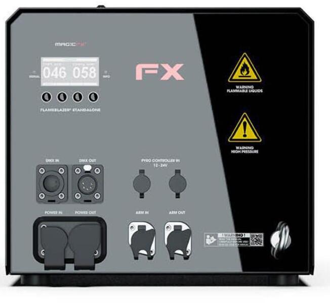 Az itt látható egyedi termékleírások és képek a DJSoundLight Kft tulajdonát képezik. Ismerje meg a MAGICFX FLAMEBLAZER-t, a legmodernebb folyékony lángosító gépünket. Rendkívül gyors és megbízható a kiváló minőségű belső szivattyúnak, a kettős gyújtásnak és a teljesen integrált, billentyűvel aktiválható engedélyező áramkörnek köszönhetően. 10 m-es (L fúvóka), 8 m-es (M fúvóka) vagy 6 m-es lángot (S fúvóka) képes kifújni. Az SFX SAFETY ARM CONTROLLER készülékkel aktiválható és biztosítható. Biztonság a művészek, a személyzet és a tömeg számára. A SAFETY ARM CONTROLLER nélkül a FLAMEBLAZER nem működtethető.